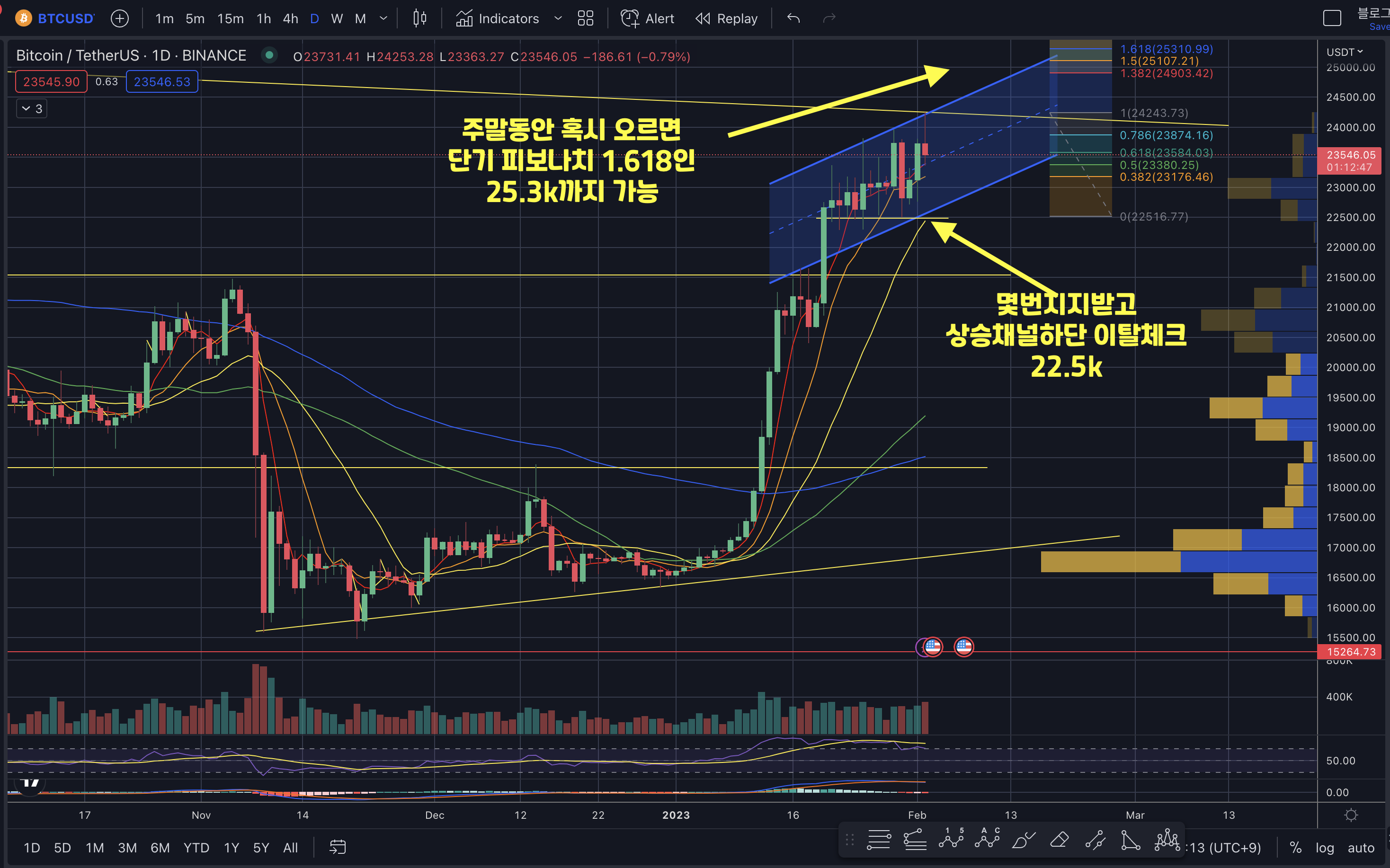 - 하락 시 지지 구간 : 23.1k -> 22.5k