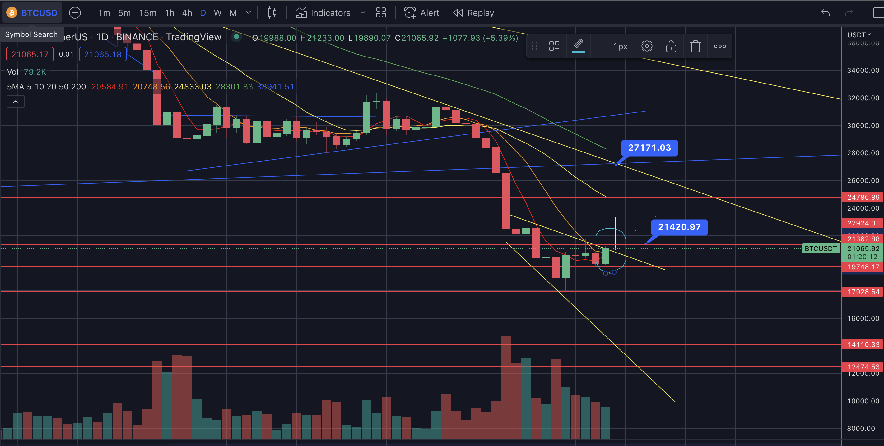 21.3k를 강하게 뚫어주면23k까지 가능할 듯 보인다. - #10일선 #5일선을 다 뚫어주면서 상승에 대한 여력이 있어보인다.