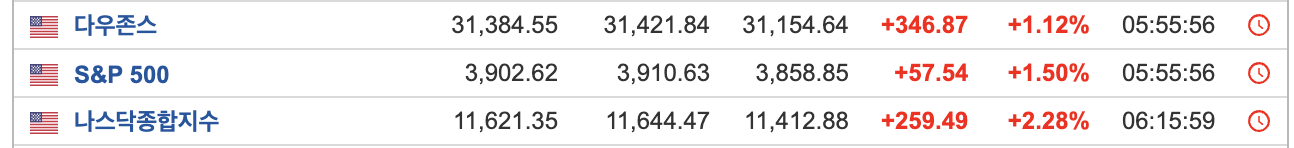 - 3대지수가 일제히 상승하고 특히