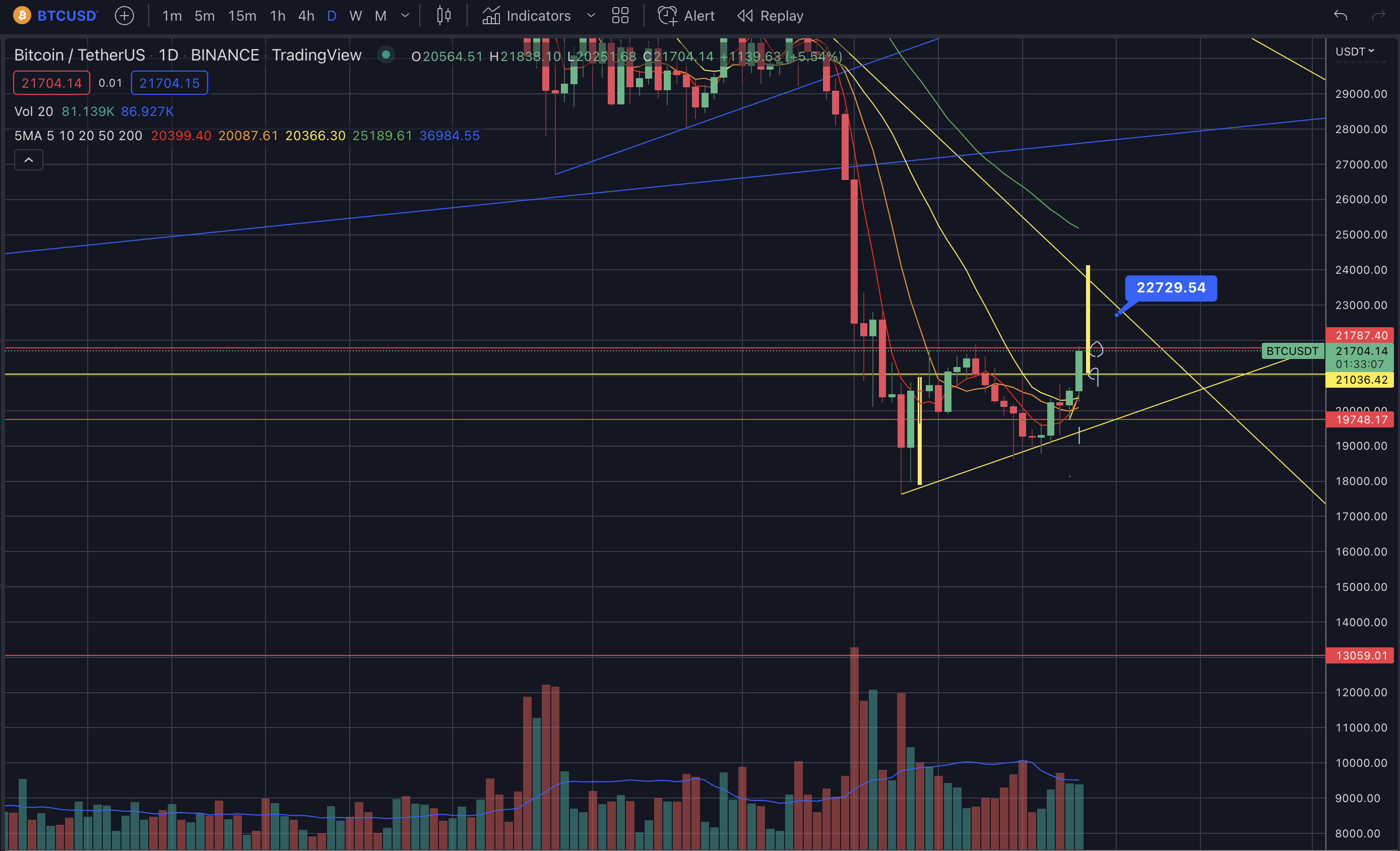 21.6을 지나고 있다. - 21k를 뚫어서 좋긴하지만 21.8이 안정하게 안착해서 더 좋은 상승을 기대할 수 있다.