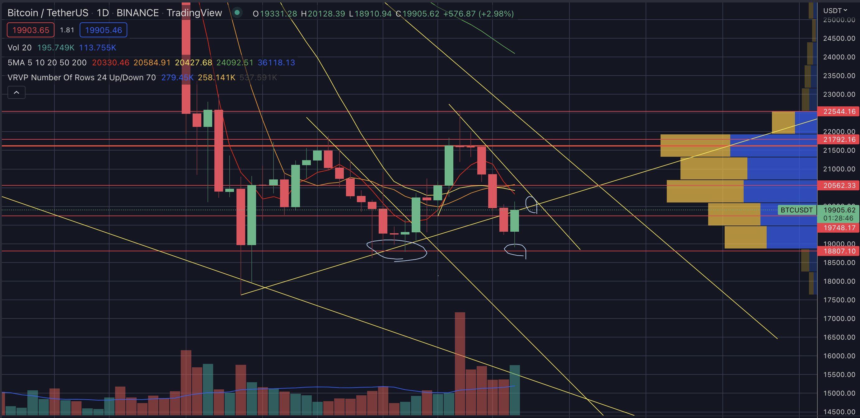 20.5k, 하락 시는18.6~8k이다. 이 지점을 깰 시 패닉셀과 동시에16~13까지 떨어질 수 있다(이지점에서 현물 분할 매수 가능) - 상승시 저항 구간 :